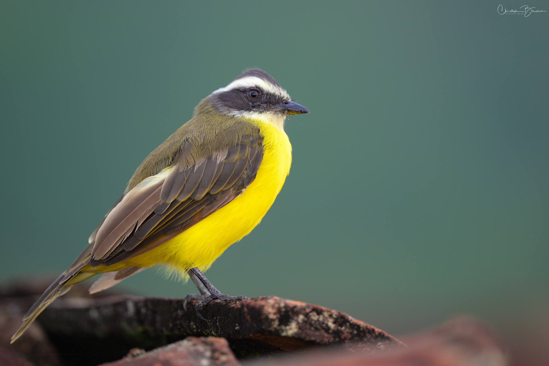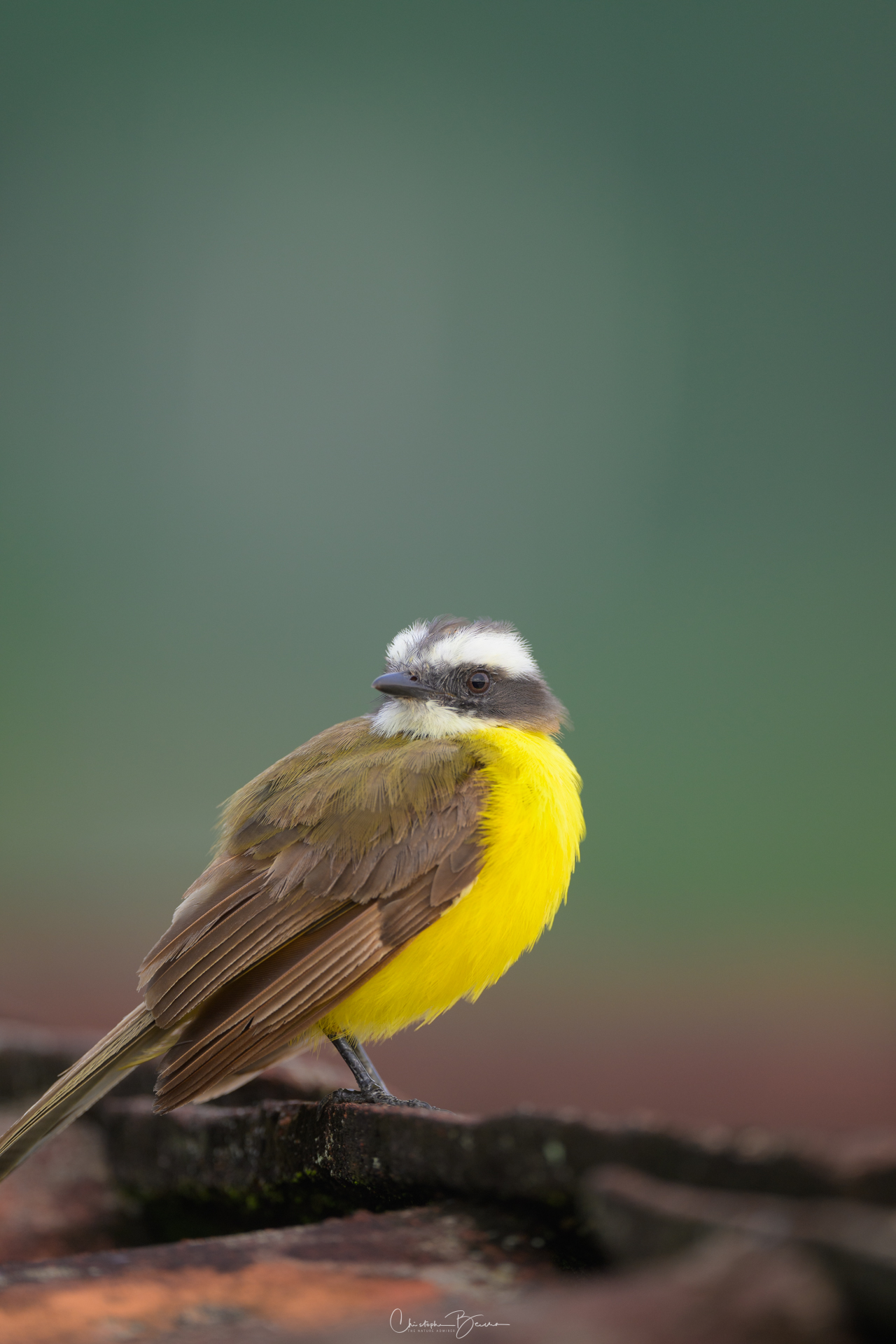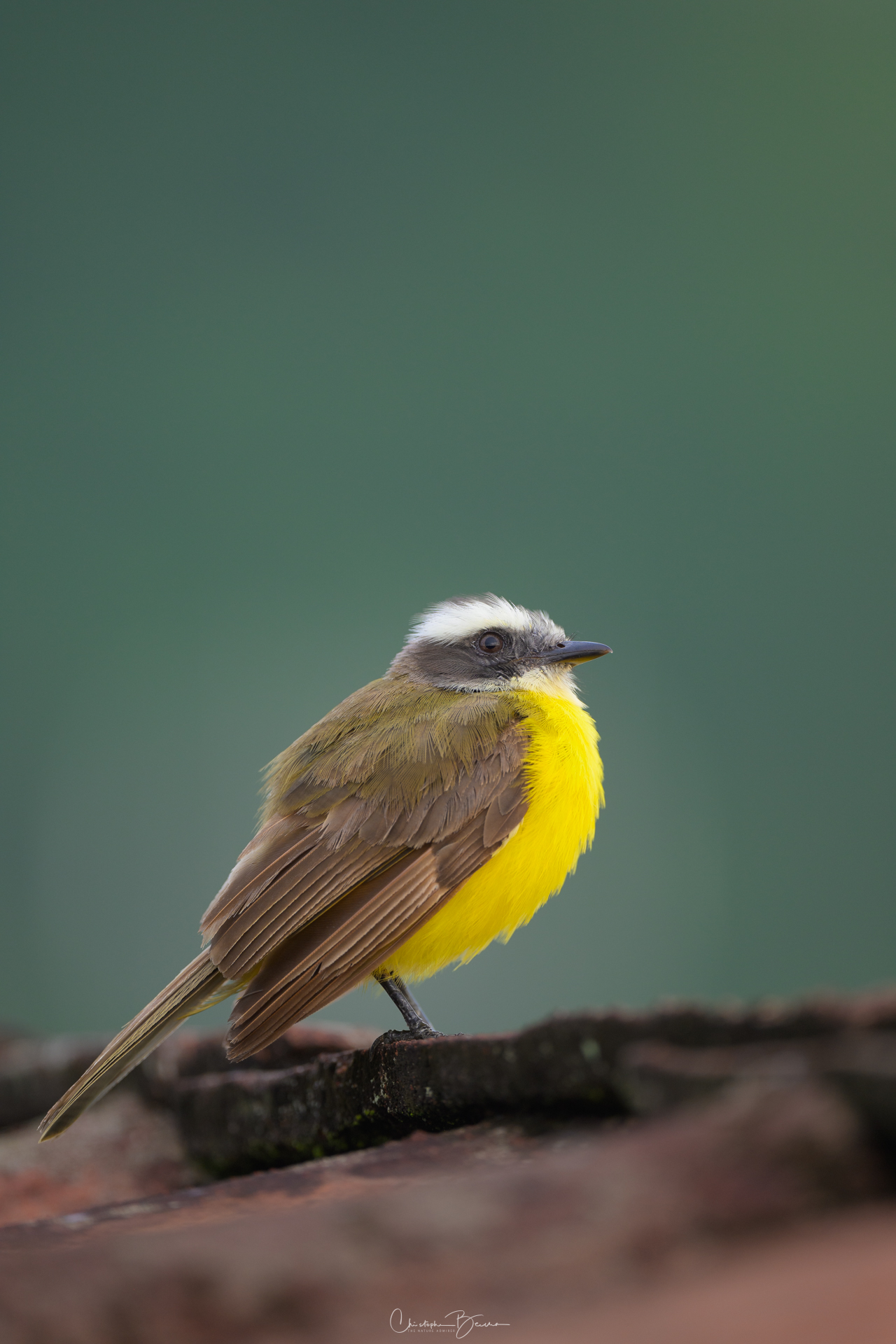 The Social Flycatcher is part of the family of “Pecho Amarillo” birds, as are locally known in Costa Rica. It is pretty difficult to identify since the birds all look alike, but they can be identified relying on size, song and head markings. My parents say that this species should be called “Shakira”, an onomatopoeic interpretation of their sound. They are almost identical in size and shape to the Gray-capped Flycatcher, however their song is very different, and the Gray-capped not just has the different head color, it also shows erect feathers which the Social does not.