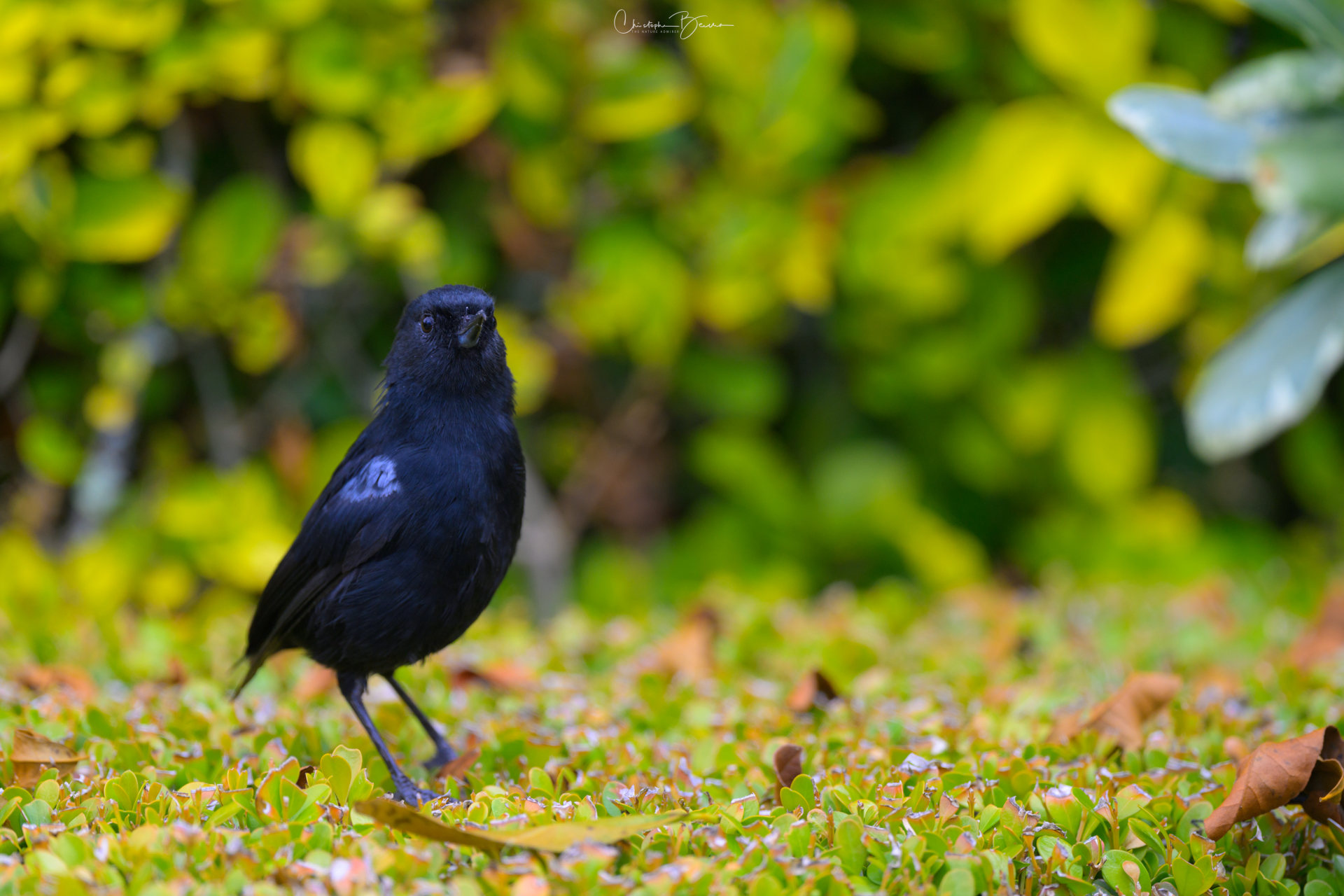 The Flowerpiercers are small birds in the Tanager family that have the upper tip of the bill curved down, allowing them to pierce flowers from the base and drink their nectar, hence their name. Their very short bill do not allow them to drink nectar like a hummingbird does, by inserting the bill into the flower, so they do not pollinate flowers. It is very similar to the Glossy Flowerpiercer, however the former is found in higher grounds, has more blueish plumage and is slightly larger. While piercing flowers, they can balance themselves in tricky positions, like upside down. Their feet grab themselves with force from the branches.