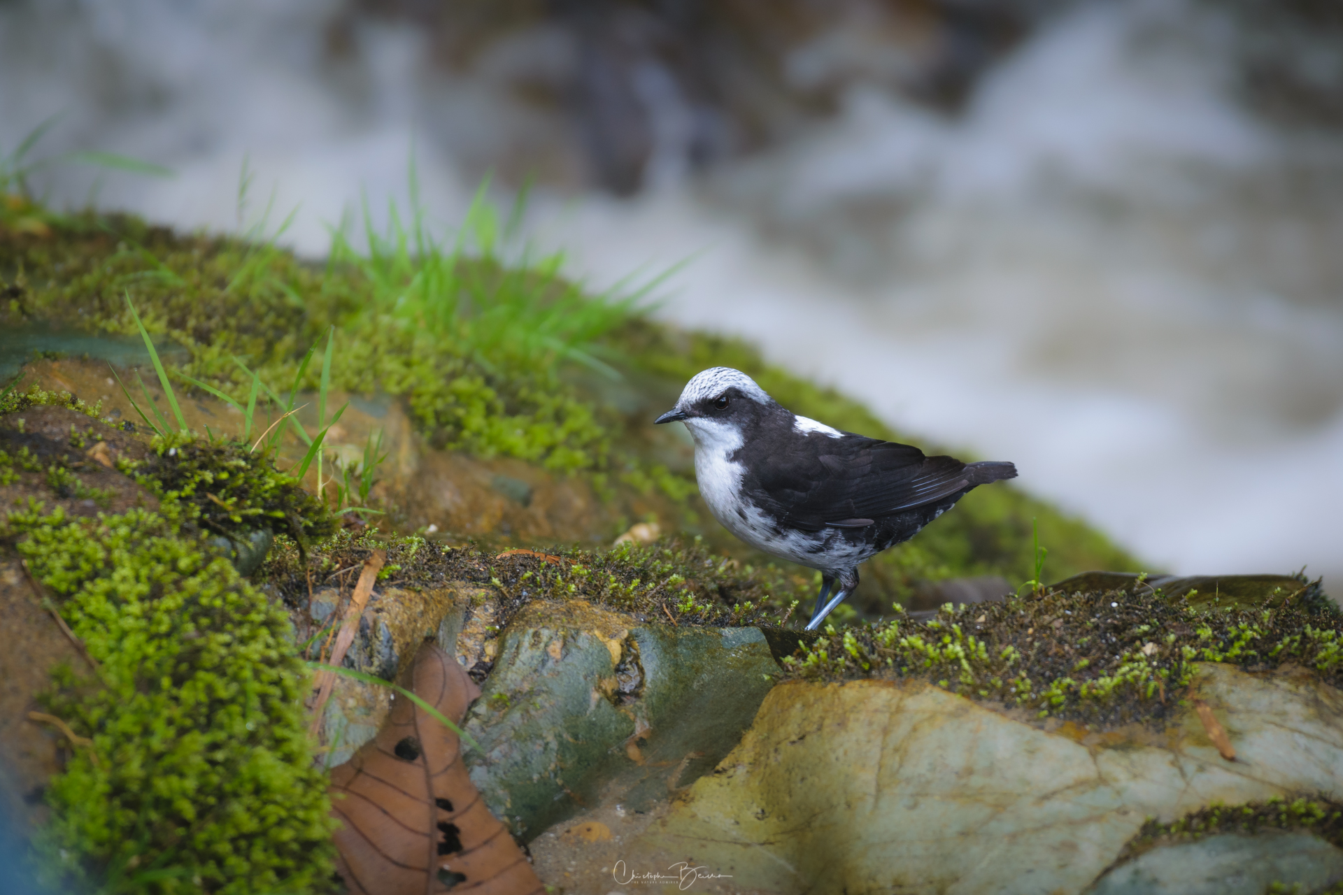 Five species of birds compose the Cinclus genus, all of which have a very unique characteristic: They dive underwater to catch small fish and invertebrates, along with their eggs and larvae. They are most commonly found along river banks and fast flowing streams. Being able to swim underwater, they bear adaptations for this purpose. For instance, their bones are solid to reduce buoyancy, while the feathers are dense and covered in oil that repels water, which has two effects: Maintaining the body dryers, and capturing a small layer of air around its body. The White-capped Dipper in particular is dark gray on the upper side, white on the underside and shows a white cap that goes well with its common name.