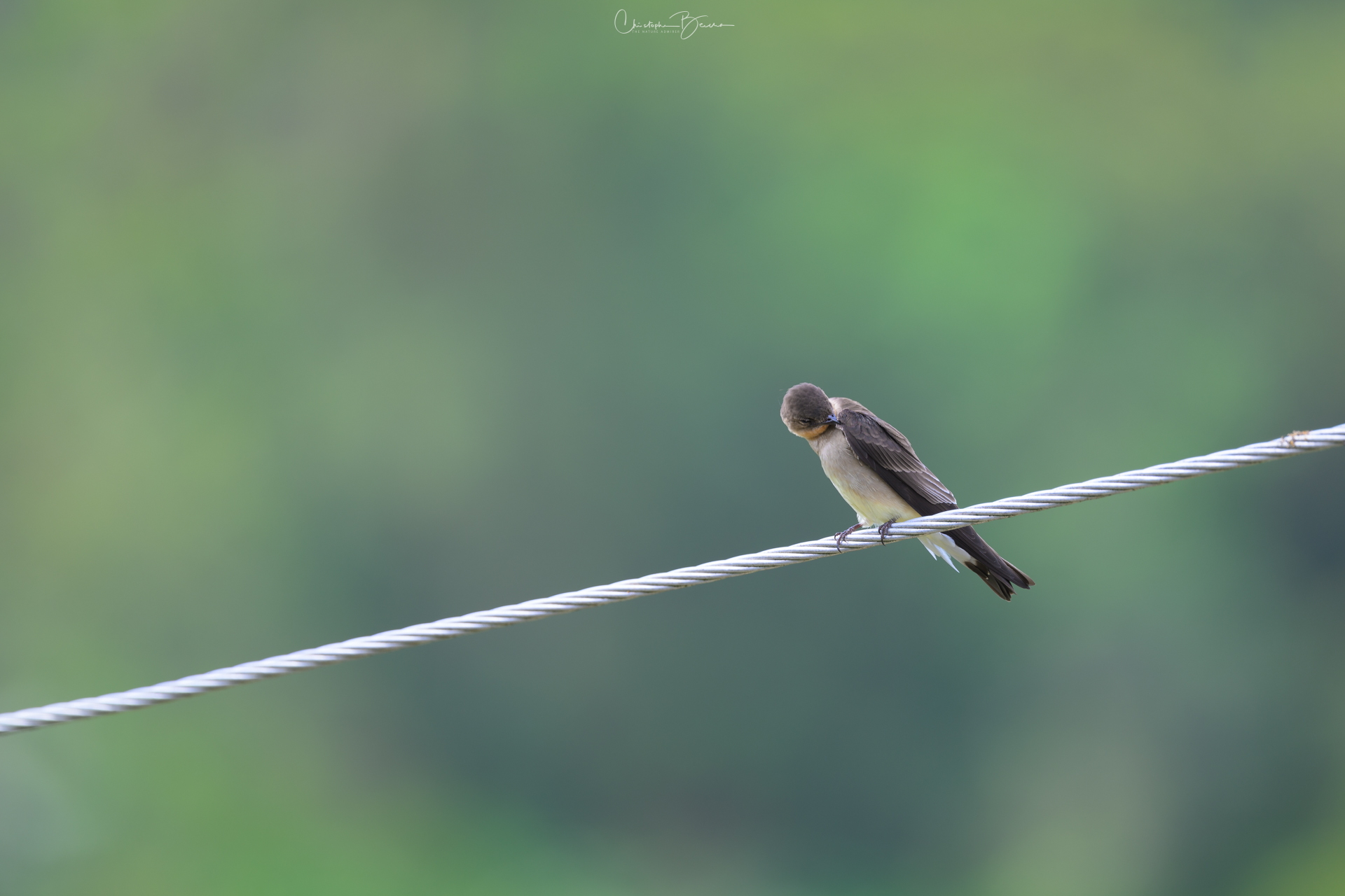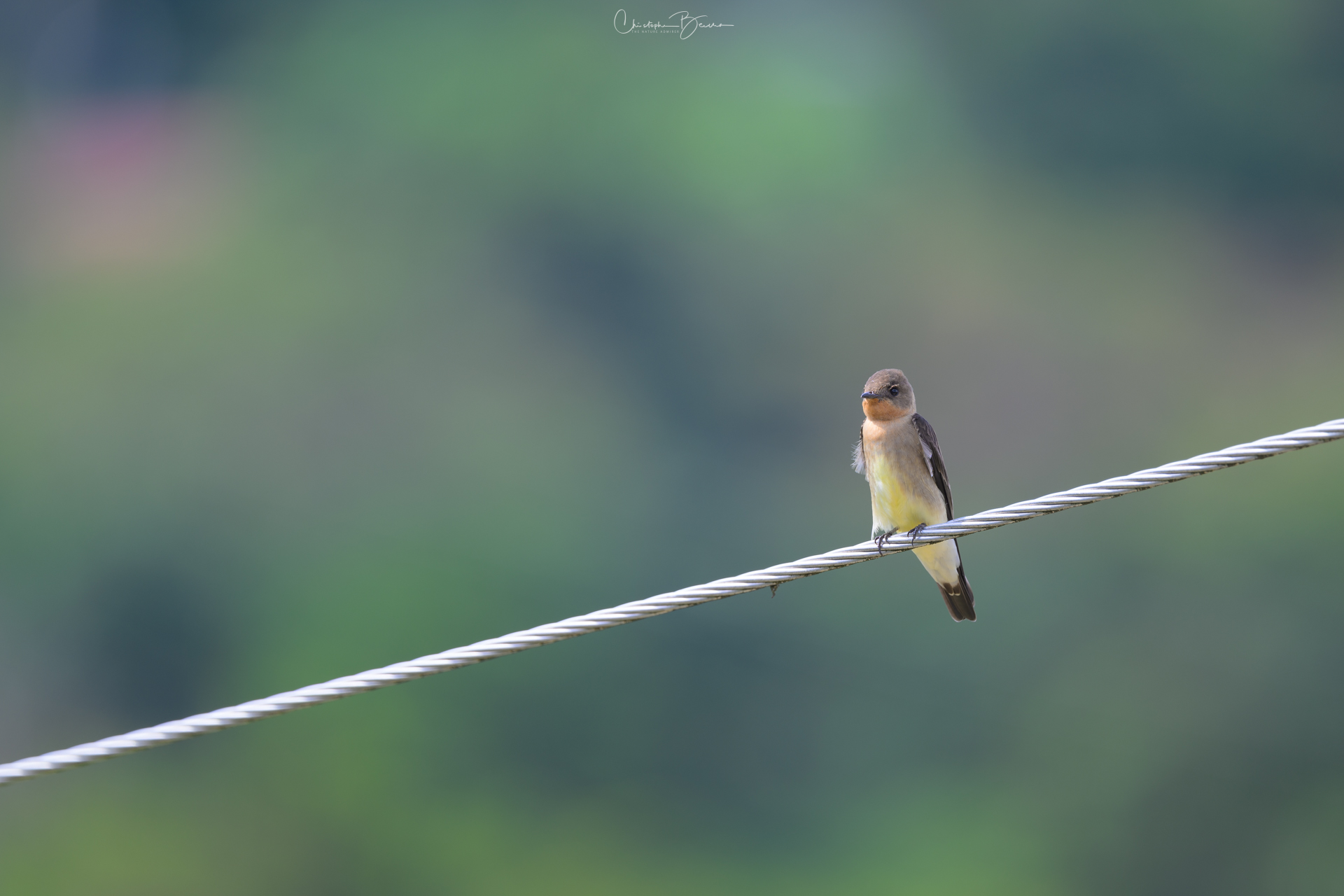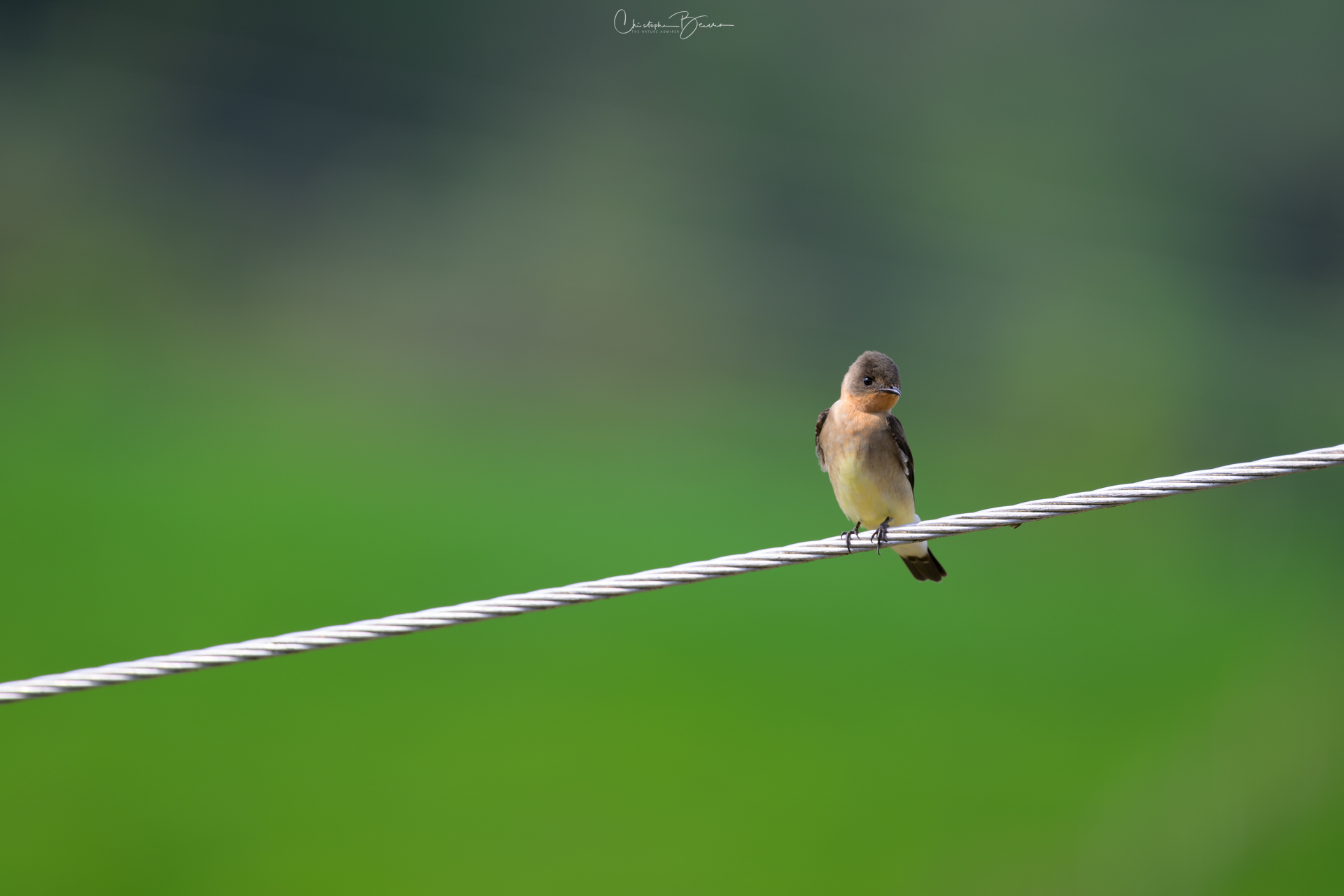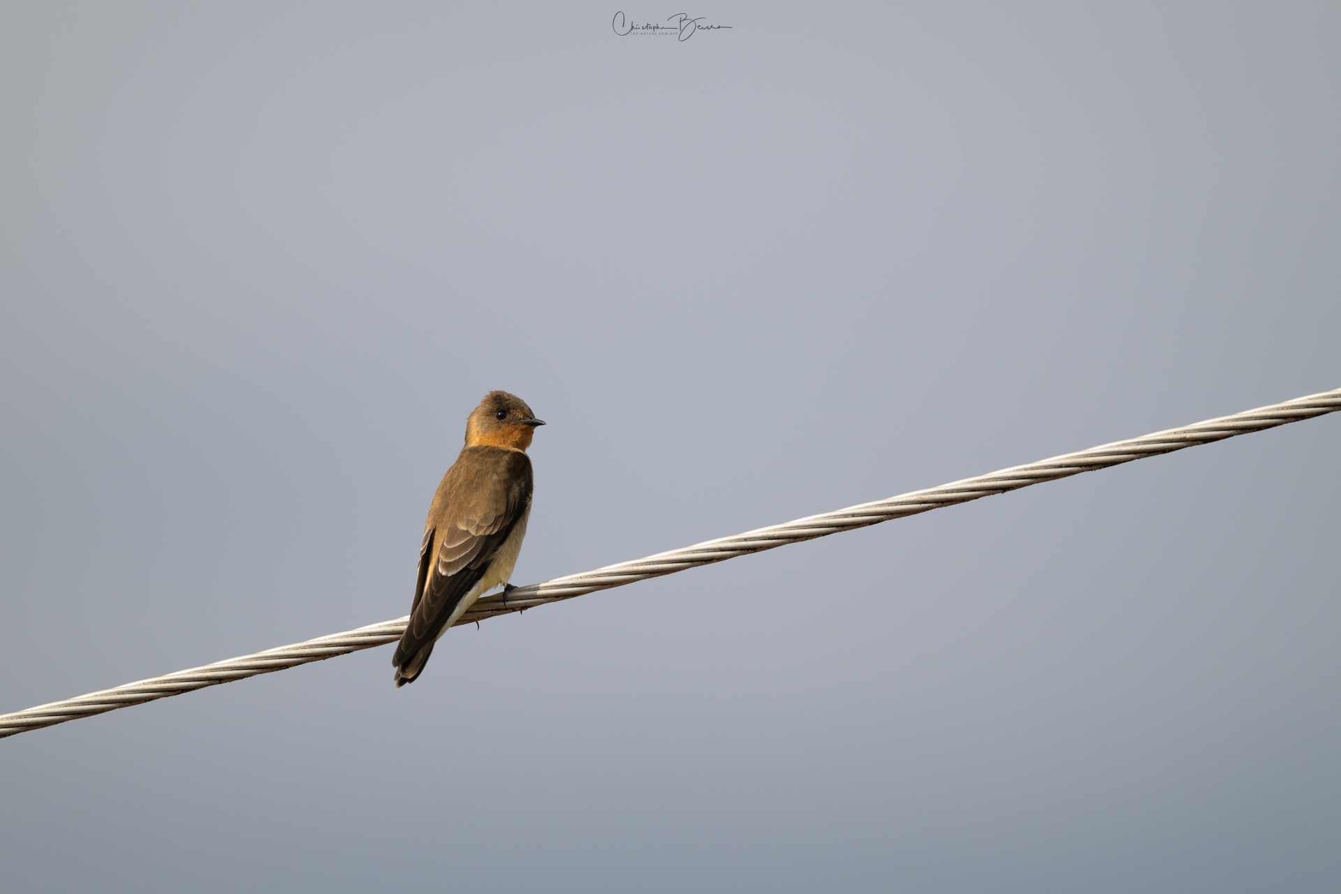The Southern Rough-winged Swallow is a small bird, mostly brown color in the upper parts and grey to white on the underparts; it shows a light orange patch on the throat. They are frequently seen, both flying and perched in lowlands in Costa Rica. They are able to catch insects in mid air, during acrobatic performances. The Northern Rough-winged Swallow is very similar, however that species lacks the orange throat of the Southern.