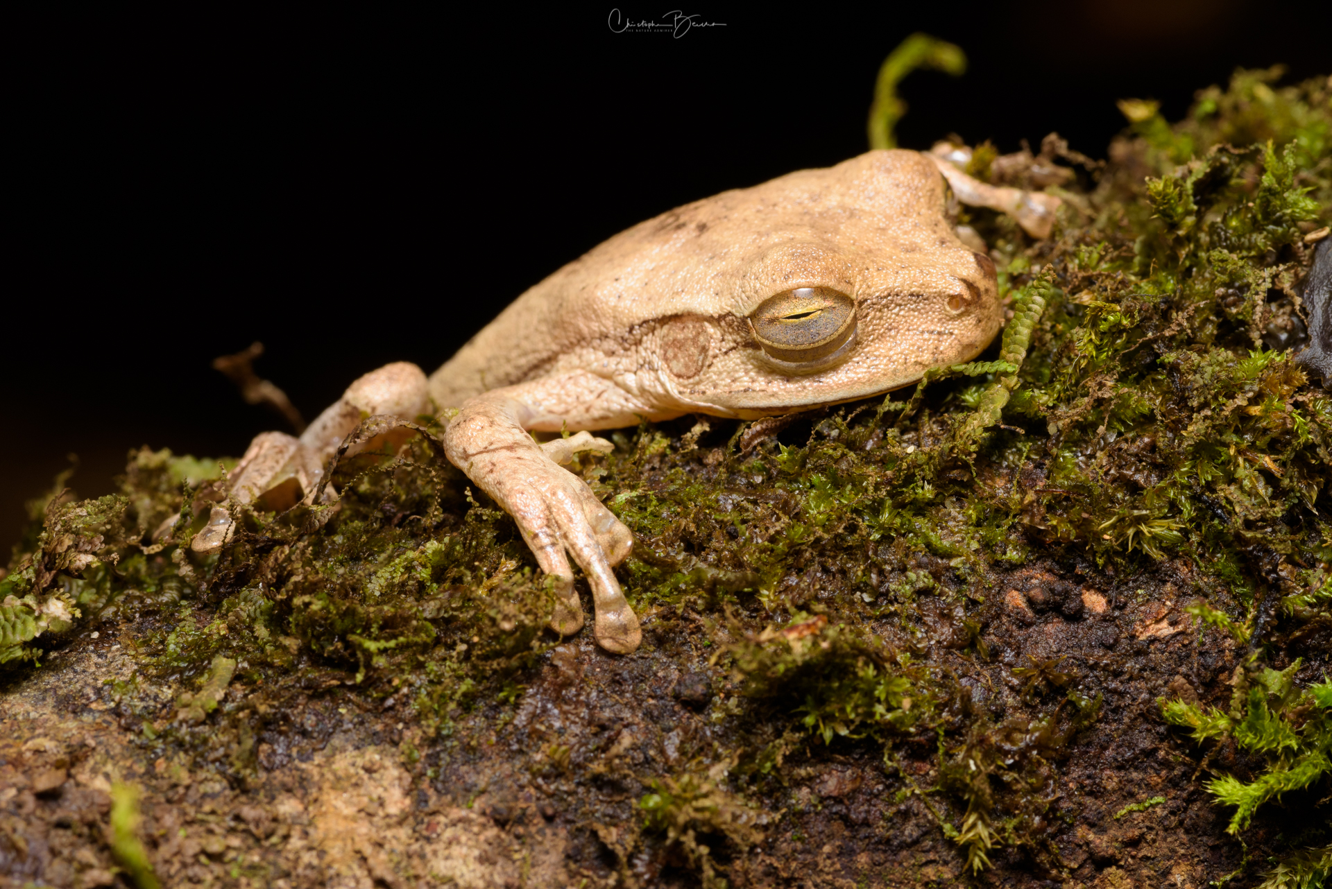 The Cross-banded or Tawny Tree Frog is a drab frog with tan to light brown coloration, expanded disks on toes and fingers, and minimal webbing in the feet. They look very similar to the Masked Tree Frog, which is another species in the Smilisca genus. In Costa Rica, it is mainly found in the Caribbean lowlands. It has nocturnal habits and prefers to be on trees, however during the reproductive season, the males descend to the ground and emit their call from the edge of small ponds. Unlike other nocturnal species that I have photographed, this frog would never fully open the eyes. Its position suggests how sleepy they are during the day. They probably rely on camouflage rather than detecting predators and escaping from them.
