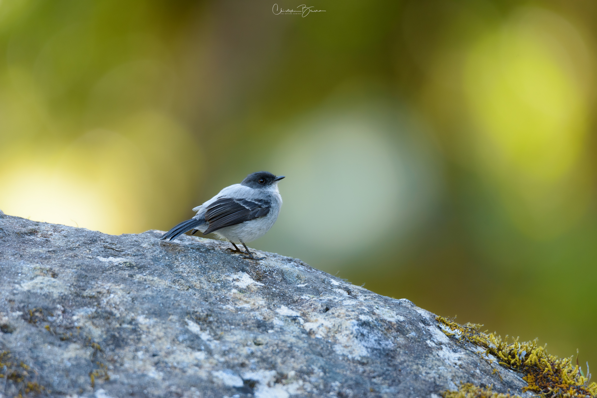 The Torrent Tyrannulet is a very small flycatcher; few other flycatchers are smaller like the Black-headed Tody-Flycatcher. The Torrent Tyrannulet inhabits river and torrents in the highlands of Costa Rica, which commonly feature rocks in and alongside the stream. It is rather dull, with overall white to gray body but black wings, tail and face. They catch insects in the air using acrobatic motions. They usually perch on rocks instead of branches, which means they are found close to ground or water level. While spooked easily by an approaching person, standing or sitting motionless for a while allows them to become used to a person’s presence, resulting in natural and even curious behavior. One such time, a bird perched on branch at a distance where my lens would not even focus (less than 2.2 meters away), and would look at me, like it was trying to decipher what I was.