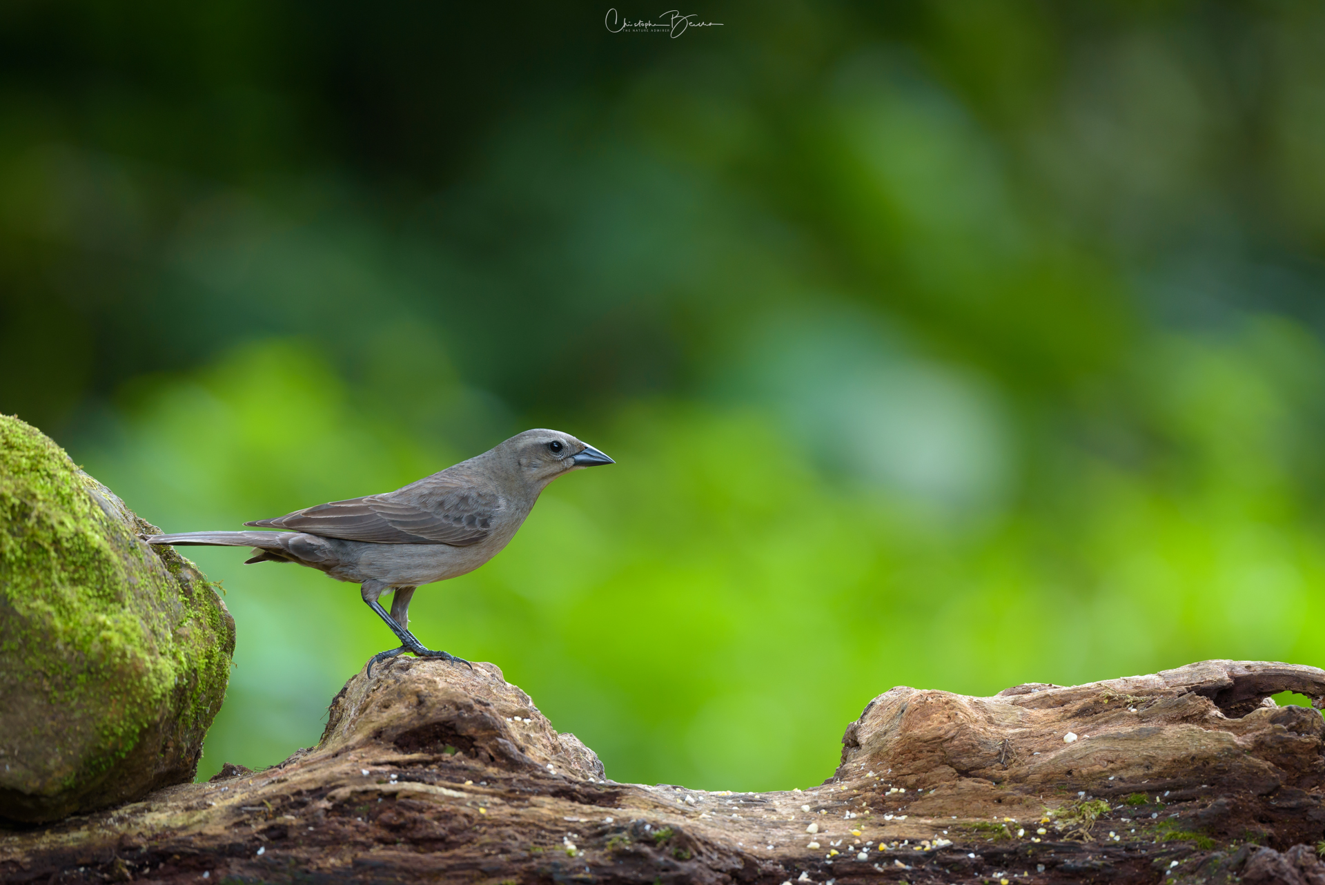 The Grayish Saltator belongs to the same family as the Black-headed Saltator, which at my parent’s home in Río Frío is much more common. As it name implies, its upperparts are gray, but the underparts are brownish, particularly close to the vent. The throat has a central white stripe, bordered by two black strips. It also shows a white supercilliary which ends right after the eye. The beak is strong as other Saltators. They sometimes come to fruit feeders, but are more wary that most other birds.