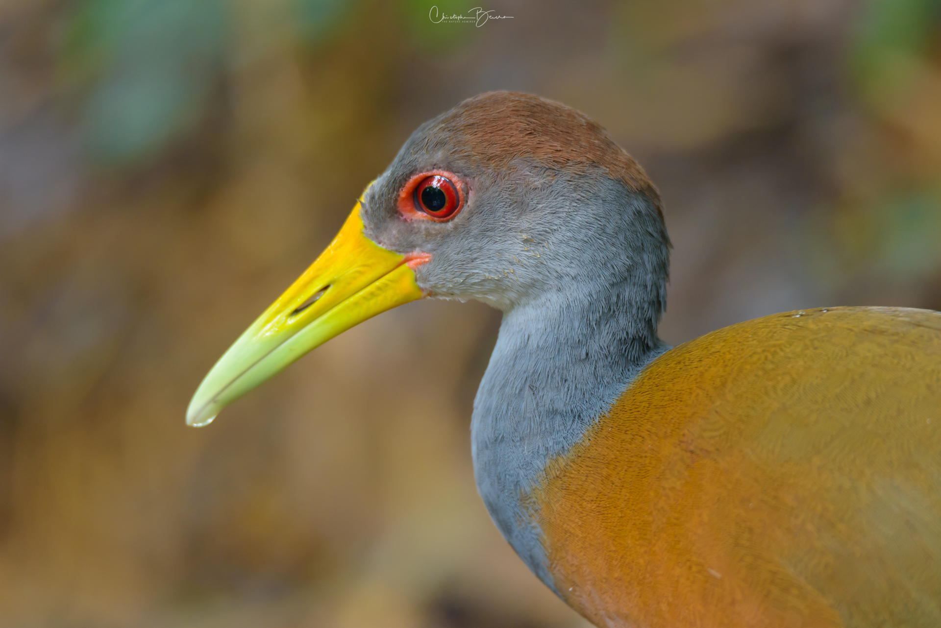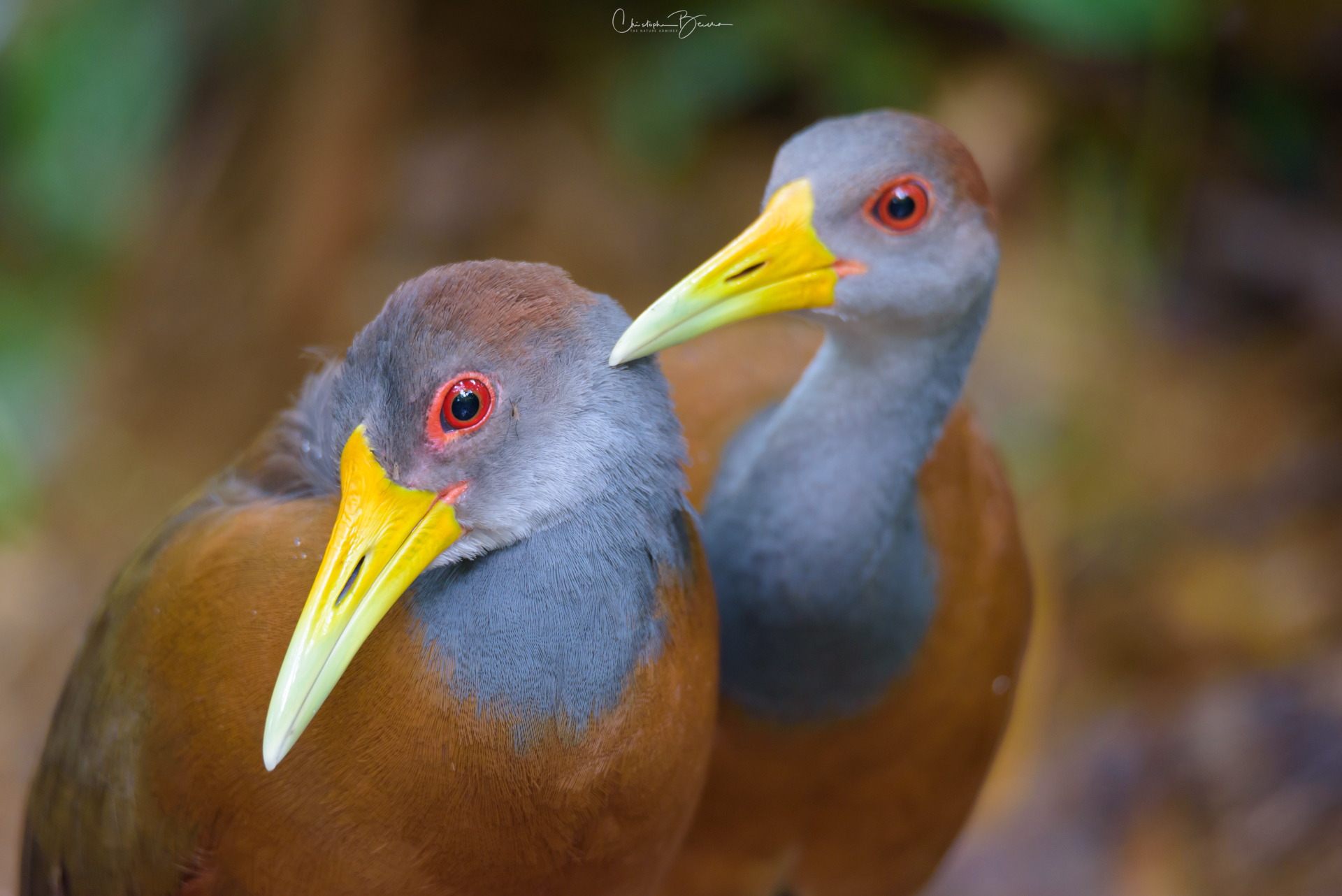 The Russet-naped Wood-Rail was recently split from the Gray-cowled, with which it obviously has a lot of similarities. As its name indicates, the differentiating feature versus the Gray-cowled is the brownish patch on the back of the neck. The rest of the body is essentially the same, starting with the yellow bill, gray neck, rufous chest and back, deep red eyes and pink legs. These are noisy birds that are usually found in pairs, presumably male and female. A pair of these birds frequently arrived to forage close to our room at Yatama Ecolodge; most of the time they would make a weird low frequency sound, similar to the noise your throat makes when drinking water very fast.