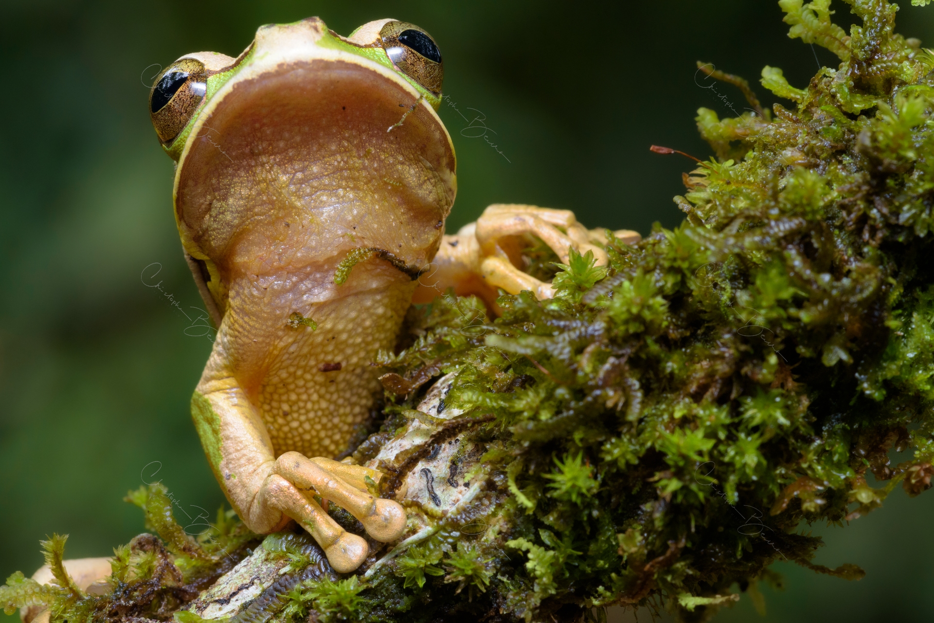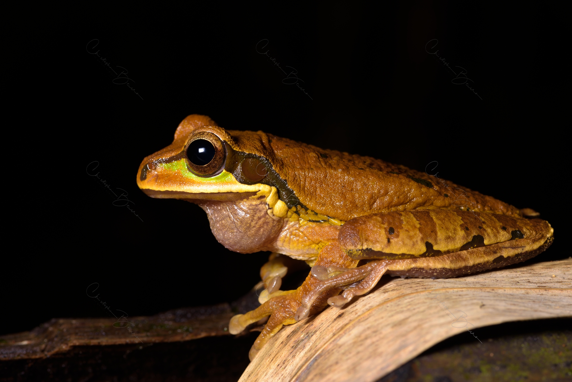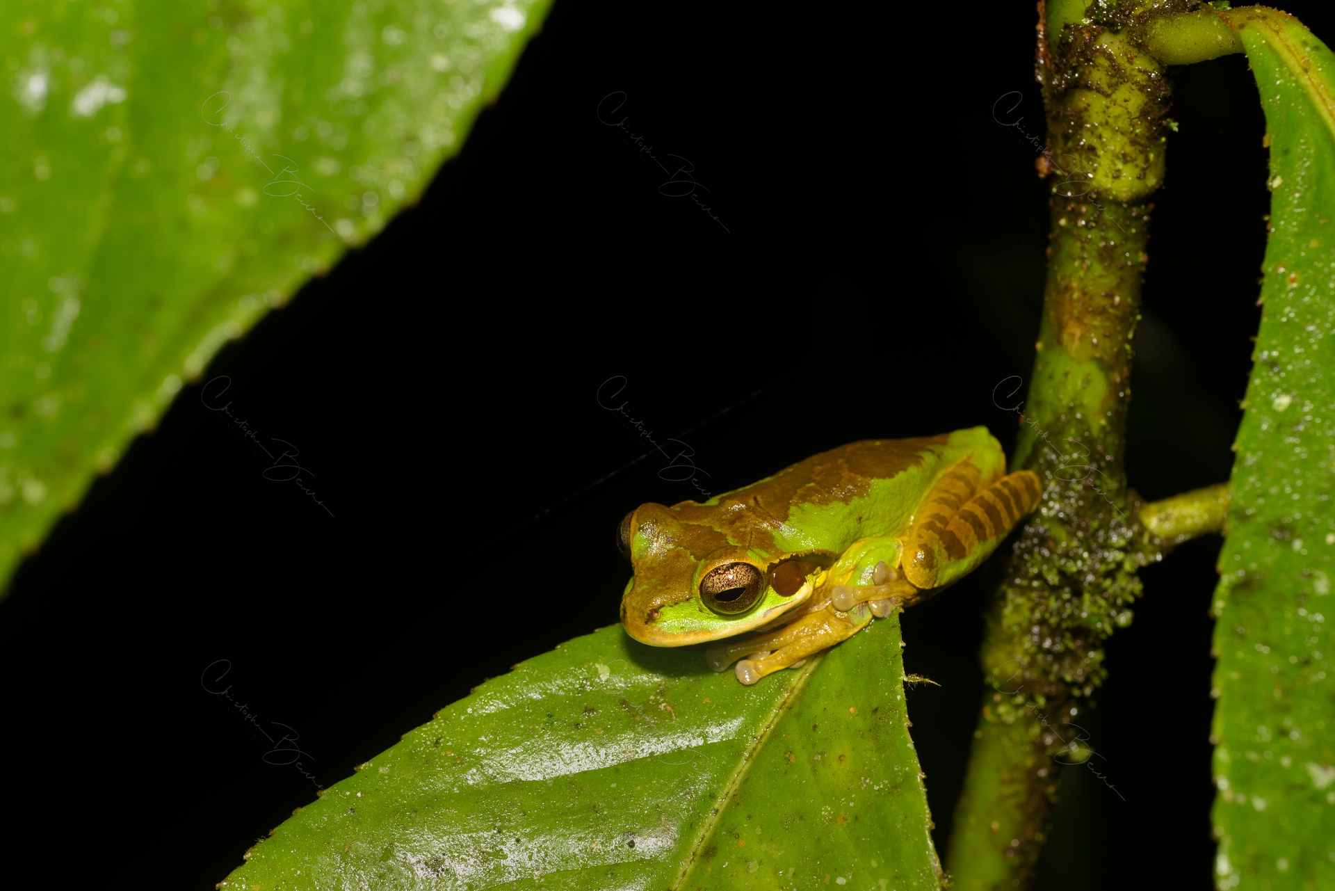 The White-line Tanager has strong dymorphism, with the male being black with a small white line on the shoulder, and the female being entirely rufous. They normally forage in pairs, which helps in identifying them. Males can look very much like Scarlet-rumped Tanagers when the rump is not visible, but the bill is gray instead of blueish. The female is also similar to the Scarlet-rumped, however it has no marks and a black bill. They also approach fruit feeders but are more wary than Scarlet-rumped preferring to forage in the dense vegetation.