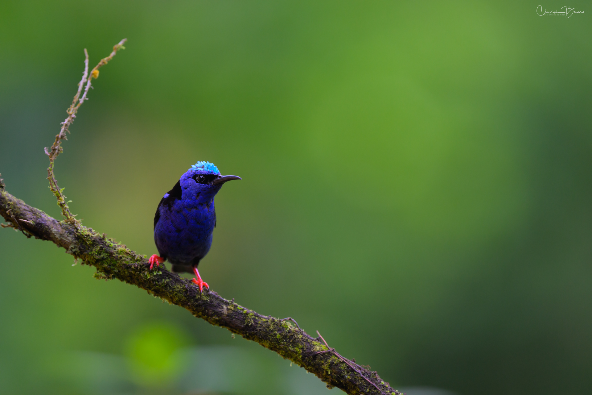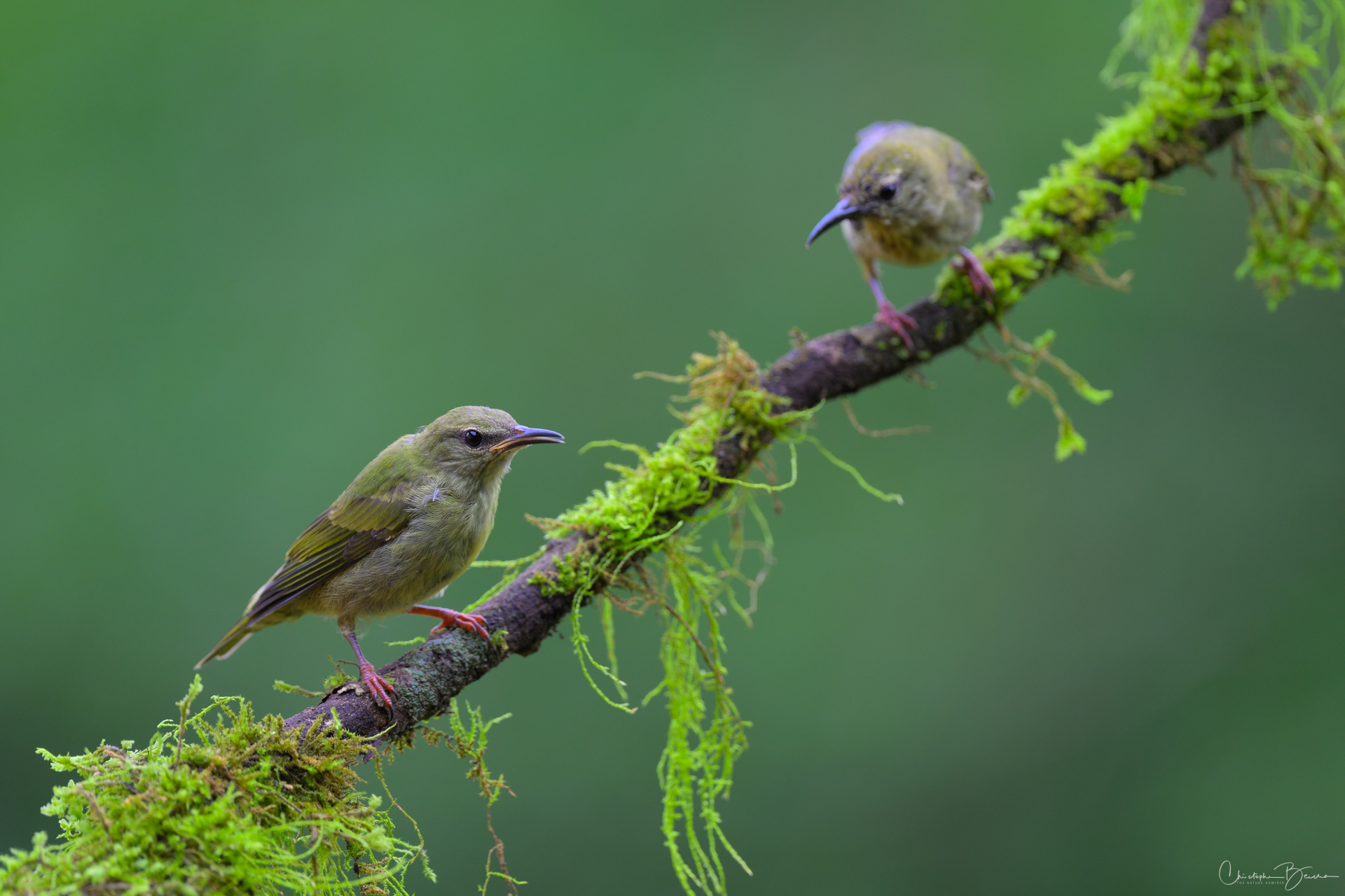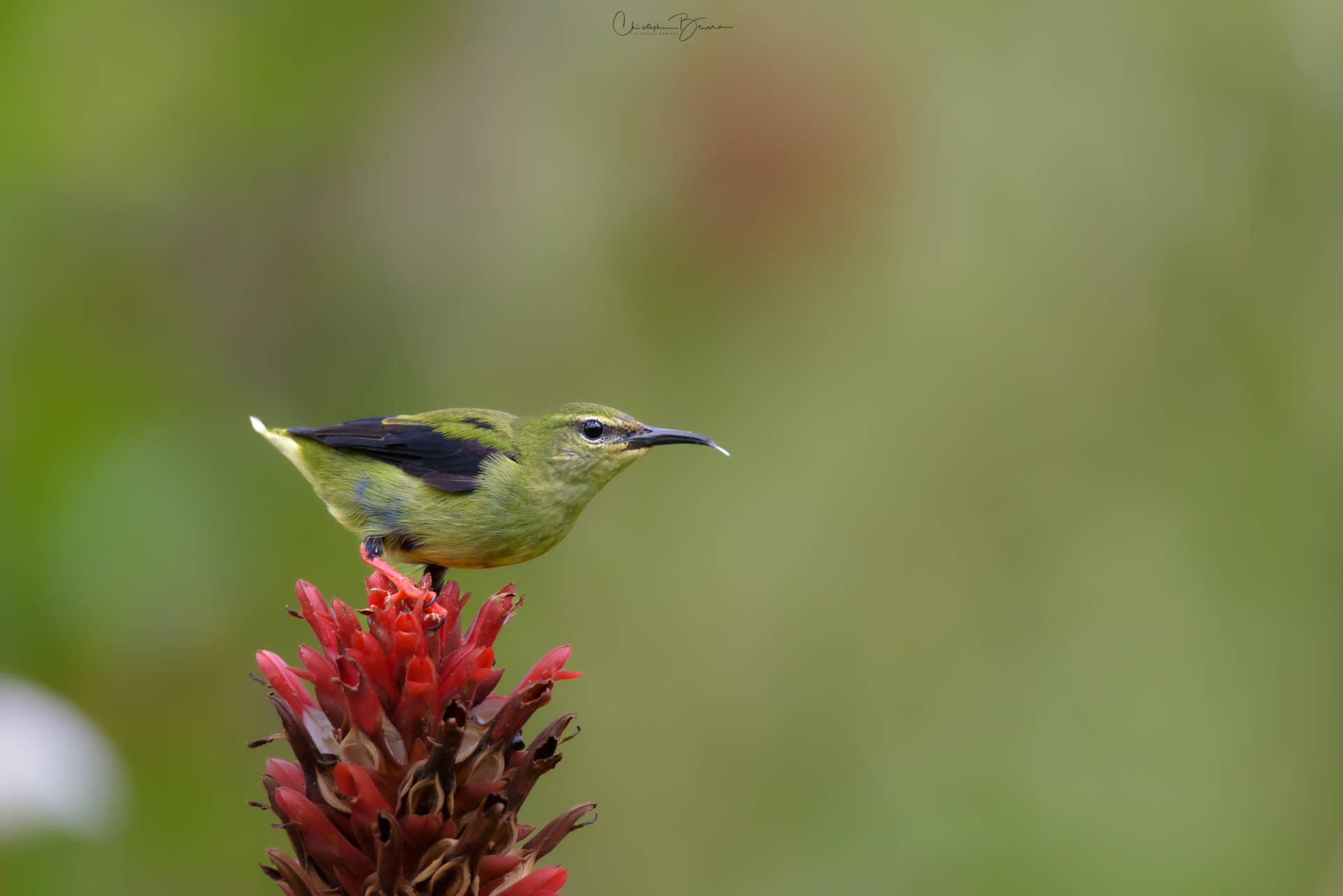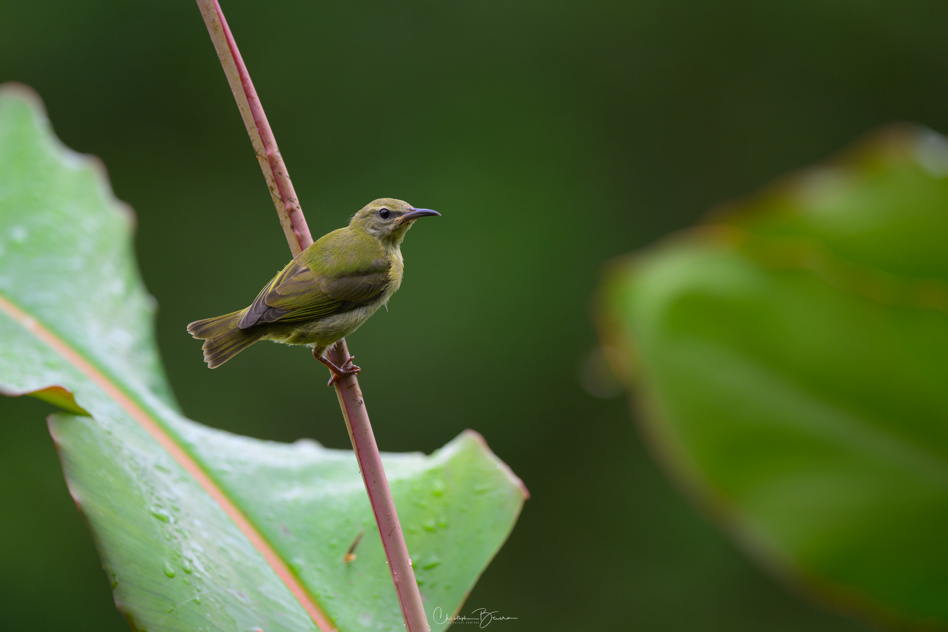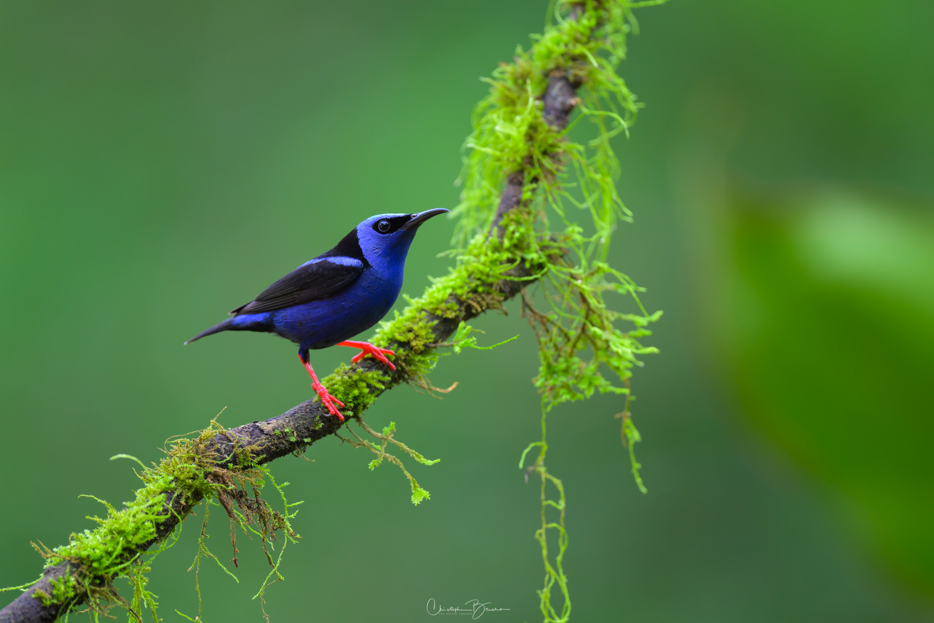 The Scarlet-rumped Tanager is known locally as “Sargento” (Seargent) and “Sangre de Toro” (Bull’s blood), among other names. Previously it was known as the Passerini´s Tanager, being virtually identical to the Cherries Tanager, but only inhabiting the Caribbean, whereas the Cherries was only found in the pacific. In sunlight, the red rump of the male glows strongly, contrasting with the deep black in the eyes and the rest of the body. The female is brownish in coloration, and differs from the Cherries by not having the orange throat. The Juvenile male has the same coloration as the female, however as it morphs into adult plumage, patches of black start to show in the body, giving it kind of a Calico look.