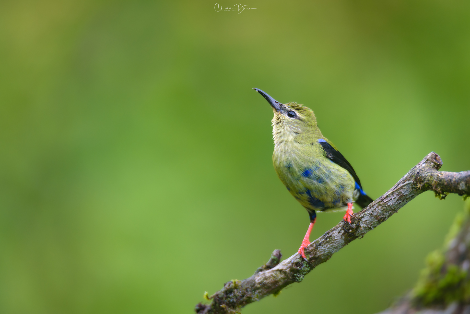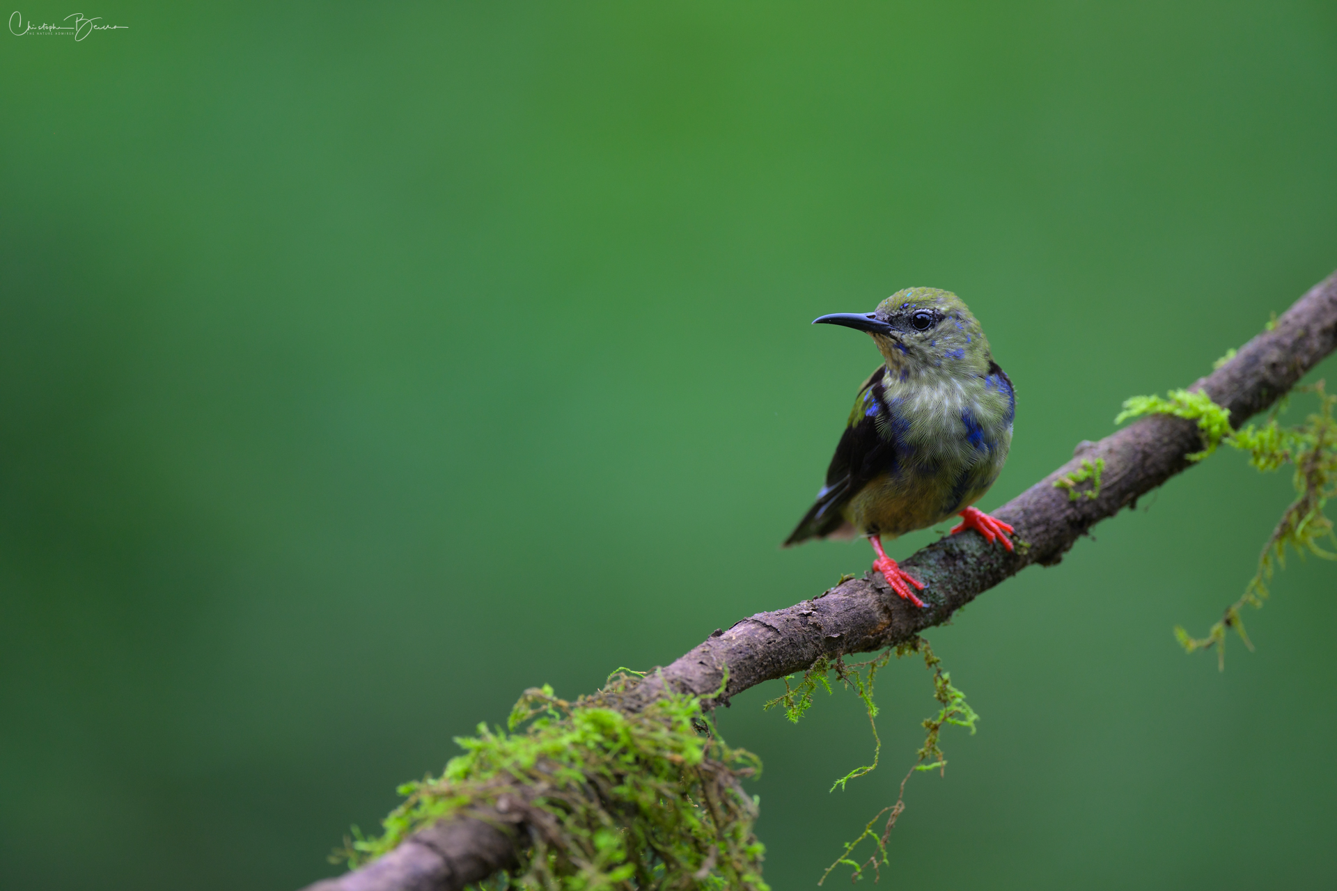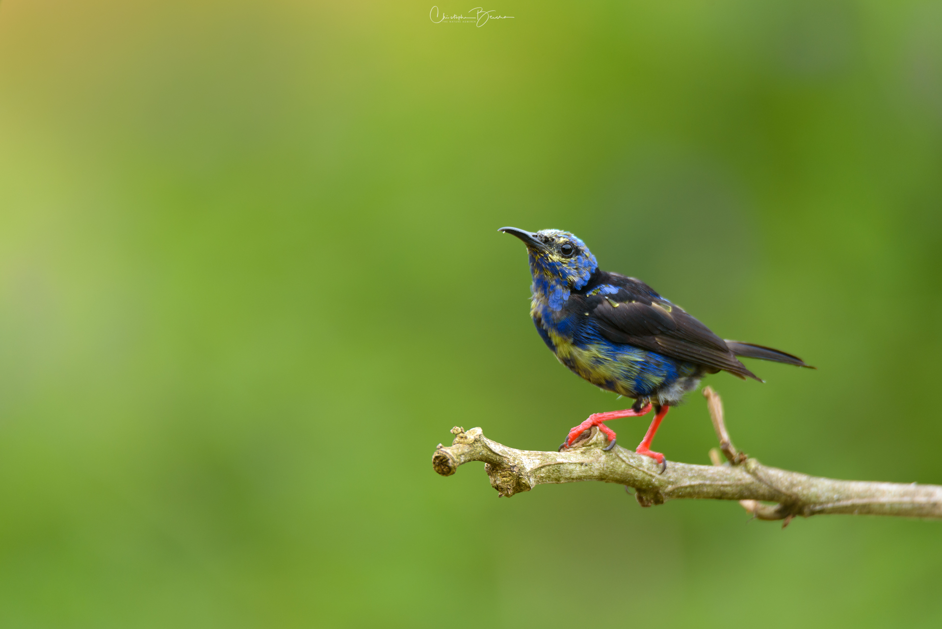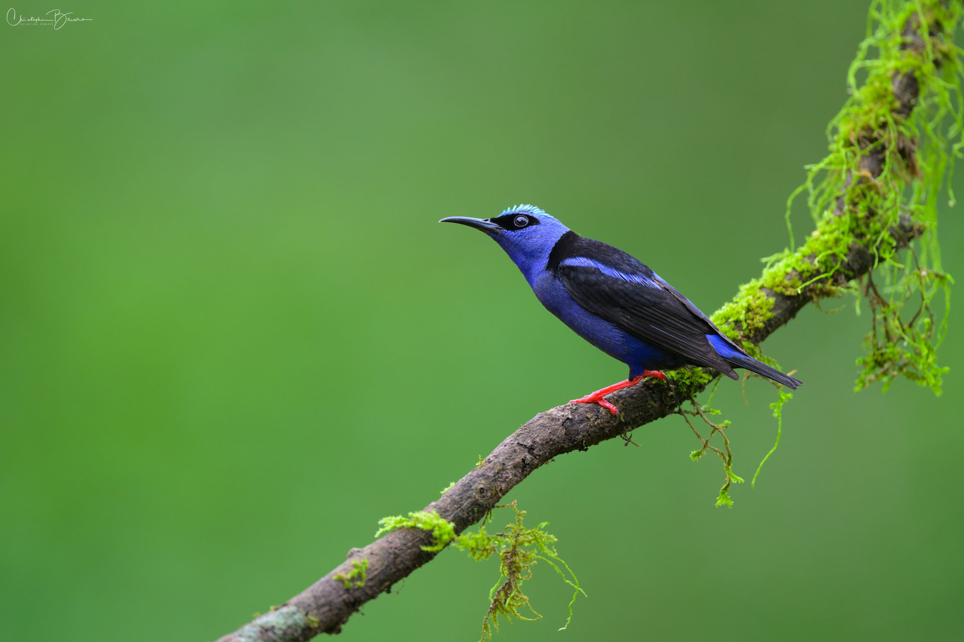The Scarlet-rumped Tanager is known locally as “Sargento” (Seargent) and “Sangre de Toro” (Bull’s blood), among other names. Previously it was known as the Passerini´s Tanager, being virtually identical to the Cherries Tanager, but only inhabiting the Caribbean, whereas the Cherries was only found in the pacific. In sunlight, the red rump of the male glows strongly, contrasting with the deep black in the eyes and the rest of the body. The female is brownish in coloration, and differs from the Cherries by not having the orange throat. The Juvenile male has the same coloration as the female, however as it morphs into adult plumage, patches of black start to show in the body, giving it kind of a Calico look.